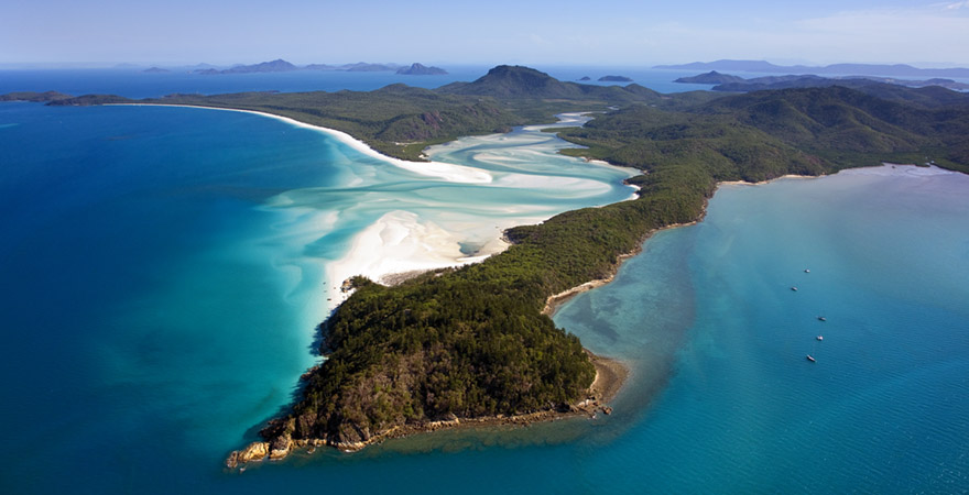 Vor der Ostküste des australischen Bundesstaates Queensland mitten im weltgrößten Riff, dem Great Barrier Reef, liegen die Whitsunday Islands. Die gleichnamige Hauptinsel ist die Heimat eines der schönsten Strände der Welt. Der feine weiße Sand setzt einen leuchtenden Kontrast zum Wasser, das in allen erdenklichen Blau- und Türkistönen schimmert. Hinter dem Strand befindet sich nichts als dichter Wald. Whitehaven Beach ist aber nicht nur einer der schönsten Strände der Welt, sondern auch einer der ökologischsten.