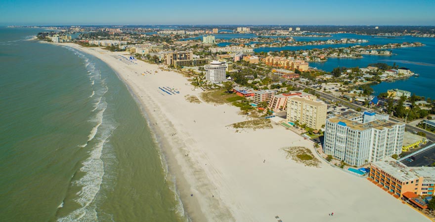 Am langen, flach abfallenden Strand gibt es unterschiedliche Abschnitte. Bei Familien besonders beliebt ist der Upham Beach. Am nördlichen Ende liegt Blind Pass, der beste Ort, um einen romantischen Sonnenuntergang zu erleben oder Delfine beobachten. Beach-Volleyball und eine etwas lebhaftere Stimmung findet ihr beim Postcard Inn und die Bar Jimmy B’s punktet mit frisch gezapftem Bier und Live-Musik. Beim TradeWinds Grand Beach Resort, könnt ihr euch einen Tagespass kaufen und dann die Sport- und Unterhaltungsmöglichkeiten nutzen. Ruhig und malerisch präsentiert sich der Strand bei Pass-a-Grille. Wenn ihr dann mal einen Tag abseits des Strandes verbringen wollt, besucht Saint Petersburg, eine Stadt mit unzähligen Sehenswürdigkeiten.