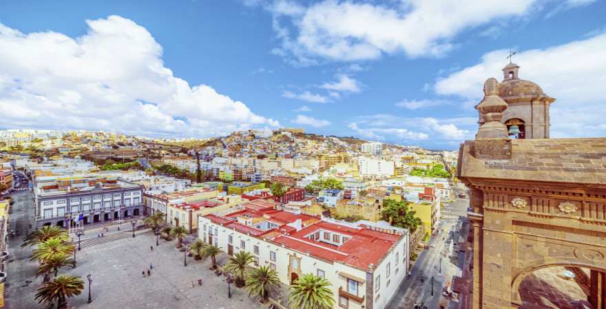 Die Inselhauptstadt Las Palmas de Gran Canaria ist eine moderne Stadt. Mittendurch ziehen sich die Ausläufer der Guiniguada Schlucht, die den modernen Teil der Stadt vom historischen Viertel Vegueta trennt. In der Altstadt flaniert ihr durch enge Gassen, die von kleinen Häusern im typisch kanarischen Stil gesäumt werden. Bei eurem Bummel erreicht ihr dann die Plaza Santa Ana, die von der Kathedrale dominiert wird.
