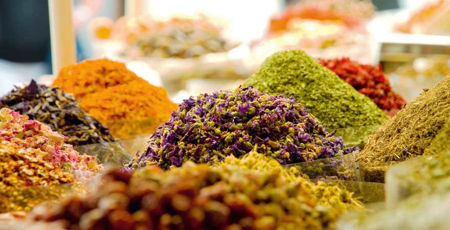 Und wenn ihr schon einmal in Seira seid, gehört der Gewürz-Souk direkt neben dem Parfüm-Souk auch ins Programm. Farbenfrohe Pyramiden aus Kurkuma, Chili, Henna und Safran türmen sich in den Auslagen, in offenen Jutesäcken sind Zimt, Kardamom, Vanilleschoten und andere orientalische Gewürze ausgestellt. Ihr werdet völlig erstaunt sein, wie anders die frischen Gewürze aus Dubai schmecken! Jede Pfeffersorte hat hier zum Beispiel ihren eigenen Geschmack, sie ist nicht nur einfach scharf wie der meiste Pfeffer in Deutschland. Neben Gewürzen findet ihr im Spice Souk auch Körbe, Töpferwaren und andere exotische Souvenirs.