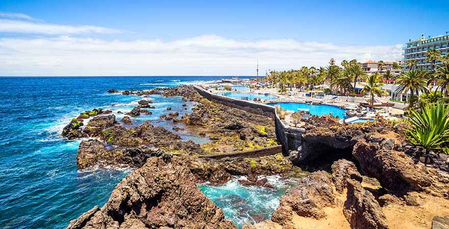 Die Kanaren sind sonnenverwöhnte Inseln und bieten euch das ganze Jahr über milde Temperaturen. Das gilt auch für Teneriffa. Wenn ihr nicht nur im Meer baden wollt, ist die größte der kanarischen Inseln das perfekte Reiseziel für euch. Es gibt nur wenige Orte auf dieser Welt, die euch so eine Vielfalt an unterschiedlichsten Landschaften bieten. Von sattem Grün in den Bergen des Nordens bis zu wüstenähnlichen Mondlandschaften in der Caldera eines Vulkankraters findet ihr hier alles. Wenn ihr mehr als nur Natur sehen wollt, bieten euch die Städte und Dörfer beeindruckende Sehenswürdigkeiten auf Teneriffa. Auch bei der Wahl des Hotels ist auf Teneriffa Vielfalt angesagt, sodass jeder das Richtige für seinen Traumurlaub auf den Kanaren finden kann.
