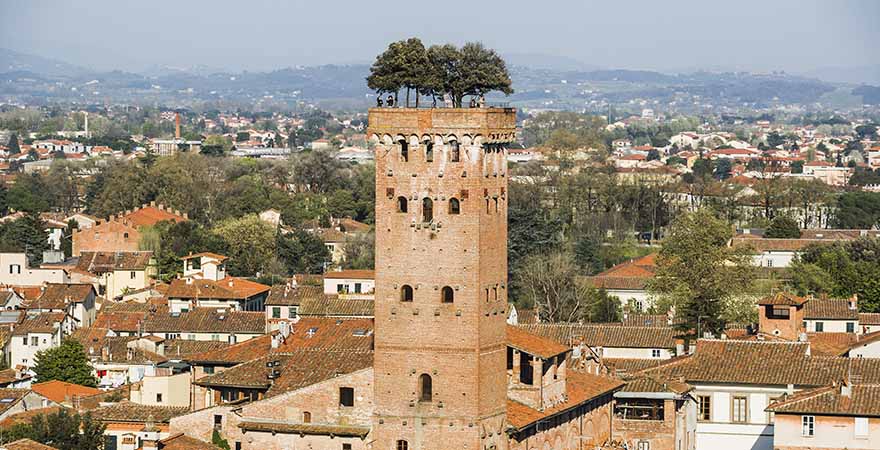 Bis 1847 war Lucca noch ein unabhängiger Stadtstaat. Diese historische Besonderheit sorgte dafür, dass innerhalb der Stadtmauer ein architektonisches Juwel entstand und bis heute erhalten geblieben ist. Ihr könnt die Altstadt auf der Mauer umrunden und von mehreren Terrassen aus von oben begutachten. Eine der bekanntesten Attraktionen der Stadt ist aber der Geschlechterturm Torre Guinigi, auf dessen Dach euch ein Garten mit Bäumen erwartet.
