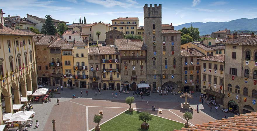 In der Altstadt wandelt ihr dann eher auf mittelalterlichen Spuren und dazu gehören natürlich ein paar Kirchen. So bestaunt ihr in der Basilika San Francesco einen kunsthistorisch bedeutenden Freskenzyklus und der Dom ist bekannt für seine bunten Glasfenster. Den Filmfans unter euch kommt vielleicht die Piazza Grande bekannt vor. Die war nämlich Kulisse in Benignis „La vita è bella“.