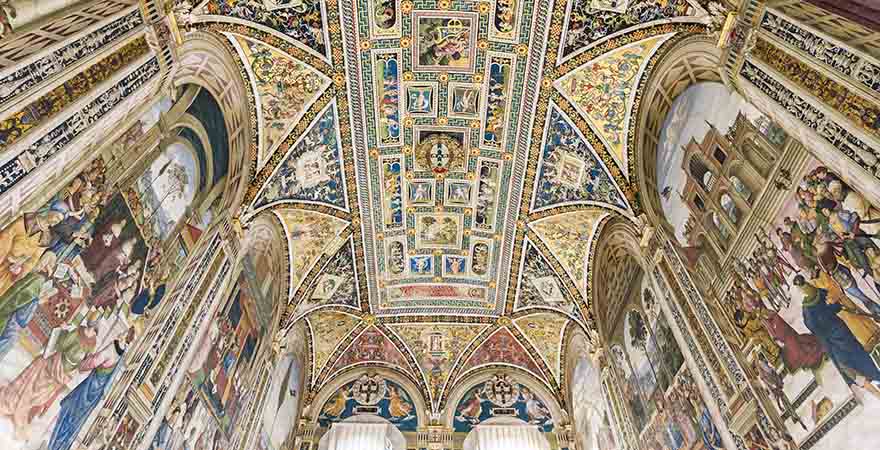 Zu ihrer Blütezeit im 14. Jahrhundert war Siena eine ernsthafte Rivalin von Florenz. Das zeigt sich noch heute in der auf drei Hügel aufgeteilten Altstadt. Die muschelförmig gepflasterte Piazza del Campo ist eine der bekanntesten Sehenswürdigkeiten, da hier zweimal jährlich das Pferderennen Palio durchgeführt wird.