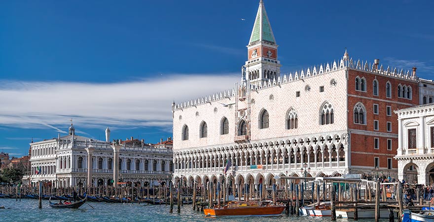 Bis 1797 war Venedig die Hauptstadt der gleichnamigen Republik, die als europäische Großmacht Handelsrouten und Gebiete im gesamten Mittelmeerraum kontrollierte. Der daraus resultierende Reichtum spiegelt sich noch heute in zahlreichen Prachtbauten, vielseitigen Bauwerken, prachtvollen Plätzen und weltbekannten Brücken wider. Wir zeigen euch, welche Highlights ihr in „bella Venezia“ keinesfalls verpassen solltet und wie ihr am besten zu den Sehenswürdigkeiten Venedigs kommt. Bereit? Die Gondel legt ab!