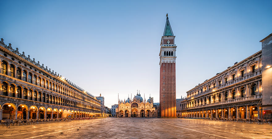• Der Markusplatz ist das Zentrum Venedigs, hier liegen einige der bekanntesten Sehenswürdigkeiten von Venedig.