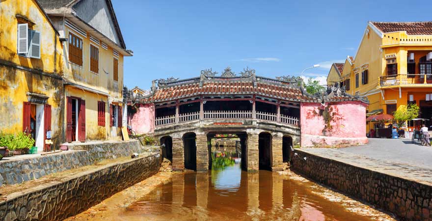 Die Jahrhunderte alte Japanische Brücke ist mit ihren Verzierungen ein wunderschöner Hingucker in Hoi An