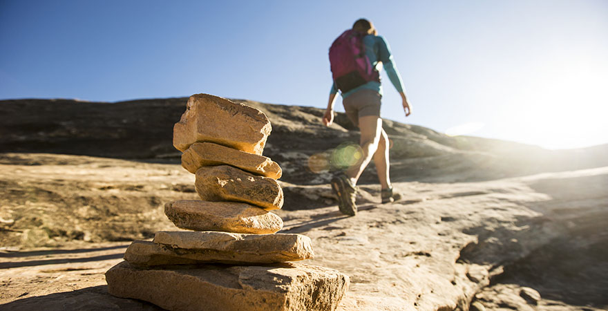 Nicht immer sind die Wanderwege auf Mallorca klar und deutlich ausgeschildert. An vielen Stellen ersetzen Steinmännchen oder Farbklekse auf Felsbrocken die Schilder. Da aber so ein Steinmännchen schon mal umfallen kann und die Felsbrocken überwuchern, empfehlen wir euch entsprechendes Kartenmaterial mitzunehmen. Auf das Handy ist nicht immer Verlass, weil es durchaus passieren kann, dass ihr in der Wildnis ohne Netz dasteht.