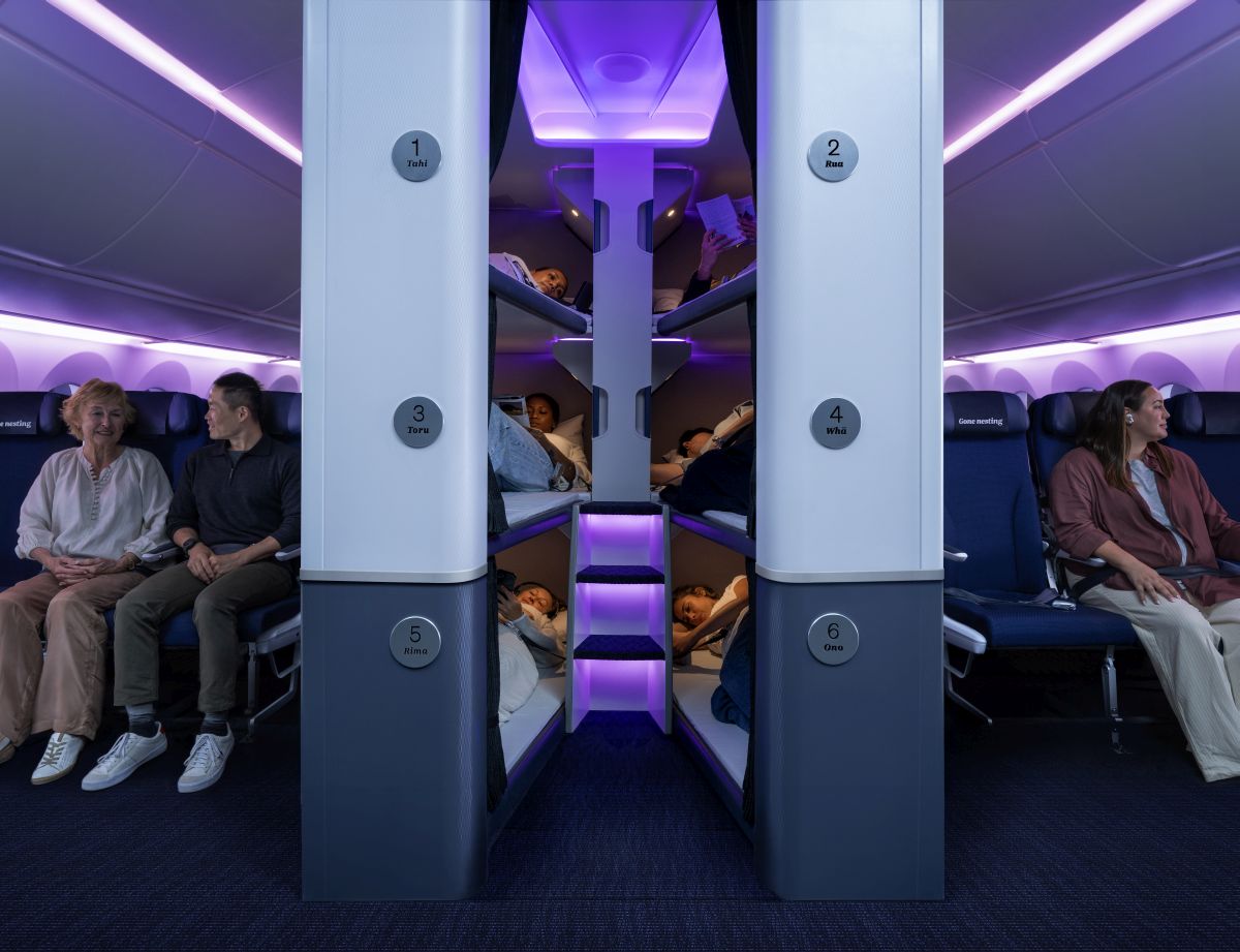 Langstreckenflüge sind für viele Reisende ein Kompromiss: günstig reisen, aber auf Komfort verzichten. Besonders beim Thema Schlaf zeigt sich der Unterschied zwischen den Klassen deutlich. Während in der Business oder First Class flache Betten Standard sind, bleibt es in der Economy meist beim aufrechten Sitzen. Genau das soll sich nun zumindest teilweise ändern. Die Air New Zealand plant erstmals Etagenbetten für Passagiere der Economy Class auf Langstreckenflügen. Die sogenannten „Skynest“-Module der neuseeländischen Fluggesellschaft bestehen aus sechs übereinander angeordneten Liegeflächen. Jede Koje ist rund zwei Meter lang und im Schulterbereich ausreichend breit, verjüngt sich jedoch zum Fußende hin. Zum Einsatz kommen die Schlafbereiche in Langstreckenflugzeugen vom Typ Boeing 787-9.