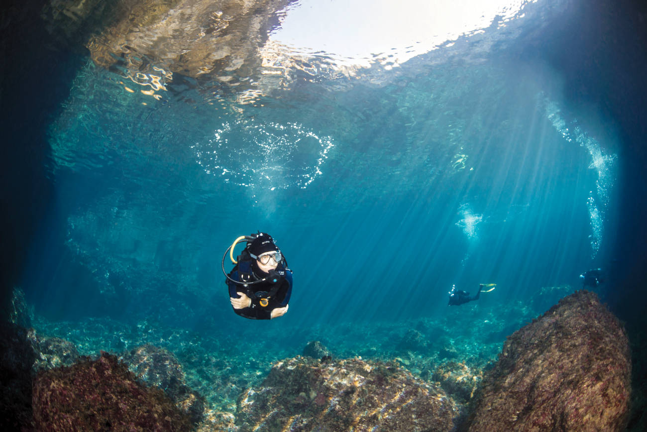 Taucher finden Unterwasserwelten zwischen etwa 5 und 35 Metern Tiefe, die mit Licht- und Farbspielen, farbenprächtiger Meeresfauna und seicht bis tief reichenden Höhlen bestechen. Beliebte Spots sind unter anderem die Blaue Grotte, die Cathedral Cave, der Xlendi Tunnel und die Billinghurst Cave. Aber auch für Einsteiger gibt es zahlreiche gut ausgestattete Tauchbasen und geführte Höhlentauchgänge.