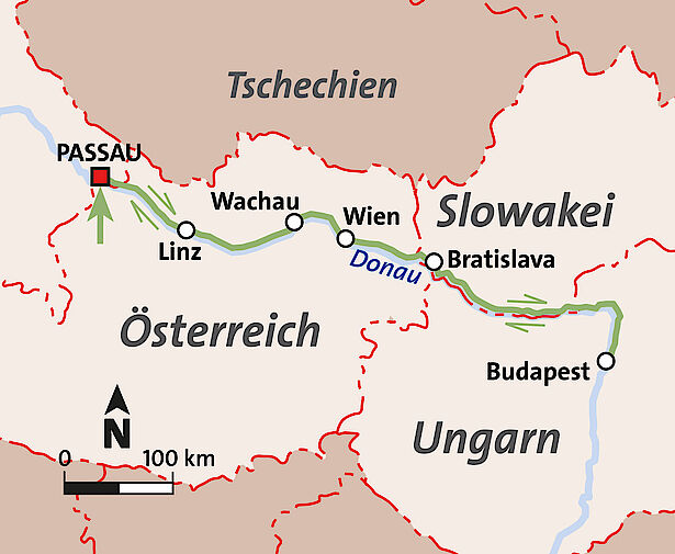 1. Tag: Passau (Ab 18:00 Uhr) 2. Tag: Melk/Österreich (Ab 13:00 Uhr) 3. Tag: Budapest/Ungarn (An 11:00 Uhr) 4. Tag Budapest/Ungarn (Ab 14:00 Uhr) 5. Tag: Bratislava/Slowakei (An 08:00 Uhr/ Ab 13:00 Uhr) 5. Tag: Wien/Österreich (An 19:00 Uhr) 6. Tag: Wien/Österreich (Ab 16:00 Uhr) 7. Tag: Linz/Österreich (An 14:00 Uhr/Ab 21:00 Uhr) 8. Tag: Passau (An 09:00 Uhr)